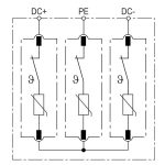 ПЗІП FLP-PV1000 Тип 1 + 2 (Клас I, Клас II), розроблений для захисту обладнання в мережах постійного струму фотоелектричних станцій (ФЕС) від прямих і індукованих грозових перенапруг. Встановлюється біля інвертора і при необхідності в стрінговой коробці (щит збору потужності постійного струму). Цей ПЗІП оптимально підходить для використання на ФЕС обладнаній зовнішнім захистом від блискавки рівня LPL III, LPL IV.