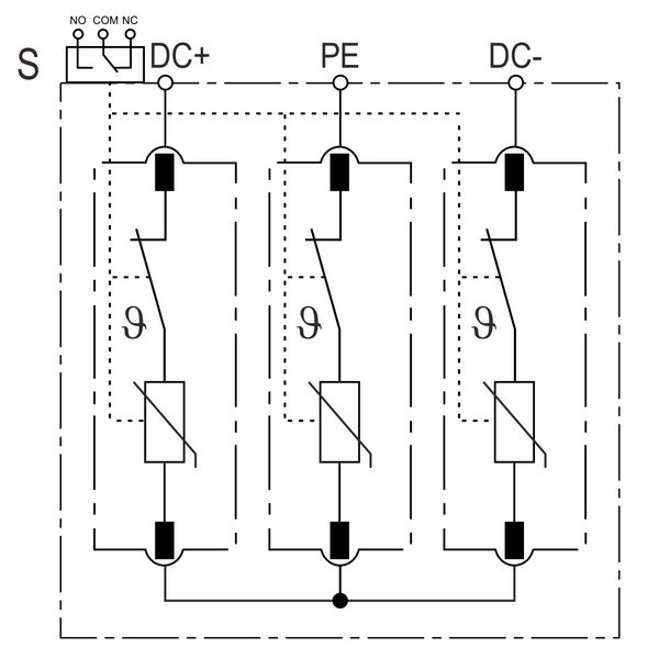 ПЗІП FLP-PV1500-S Тип 1+2 (Клас I, Клас II), розроблений для захисту обладнання в мережах постійного струму фотоелектричних станцій (ФЕС) від прямих і індукованих грозових перенапруг. Встановлюється біля інвертора і при необхідності в стрінговой коробці (щит збору потужності постійного струму). Оптимально підходить для використання на ФЕС обладнаної зовнішньої захистом від блискавки рівня LPL III, LPL IV.