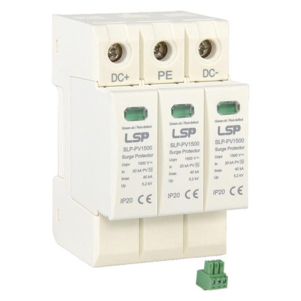 ПЗІП SLP-PV1500-S Тип 2 (Клас II), розроблений для захисту обладнання в мережах постійного струму фотоелектричних станцій (ФЕС) від індукованих грозових перенапруг. Встановлюється біля інвертора і при необхідності в стрінговой коробці (щит збору потужності постійного струму).