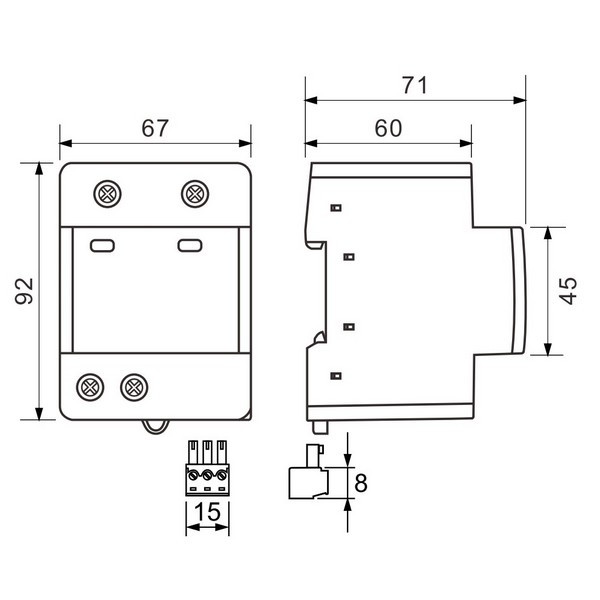 Використовується моноблочна конструкція. Виконано на пвідужних метал оксидних варисторах (MOV) і іскрових газових розрядниках GDT.