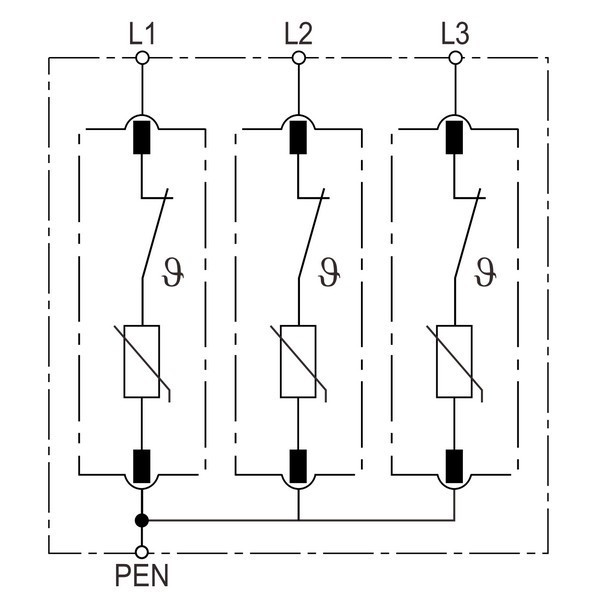 Головна ПЗІП для мереж змінного струму ПЗІП SLP20-275 /3 Тип 2 + 3 In 10 кА. Виконання 3 + 0