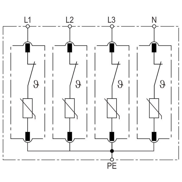 УЗИП SLP20-275 / 4 Тип 2 + 3 (Клас II, Клас III) у виконанні 4 + 0, розроблений для захисту обладнання в мережах низької напруги від комутаційних і індукованих грозових перенапруг.